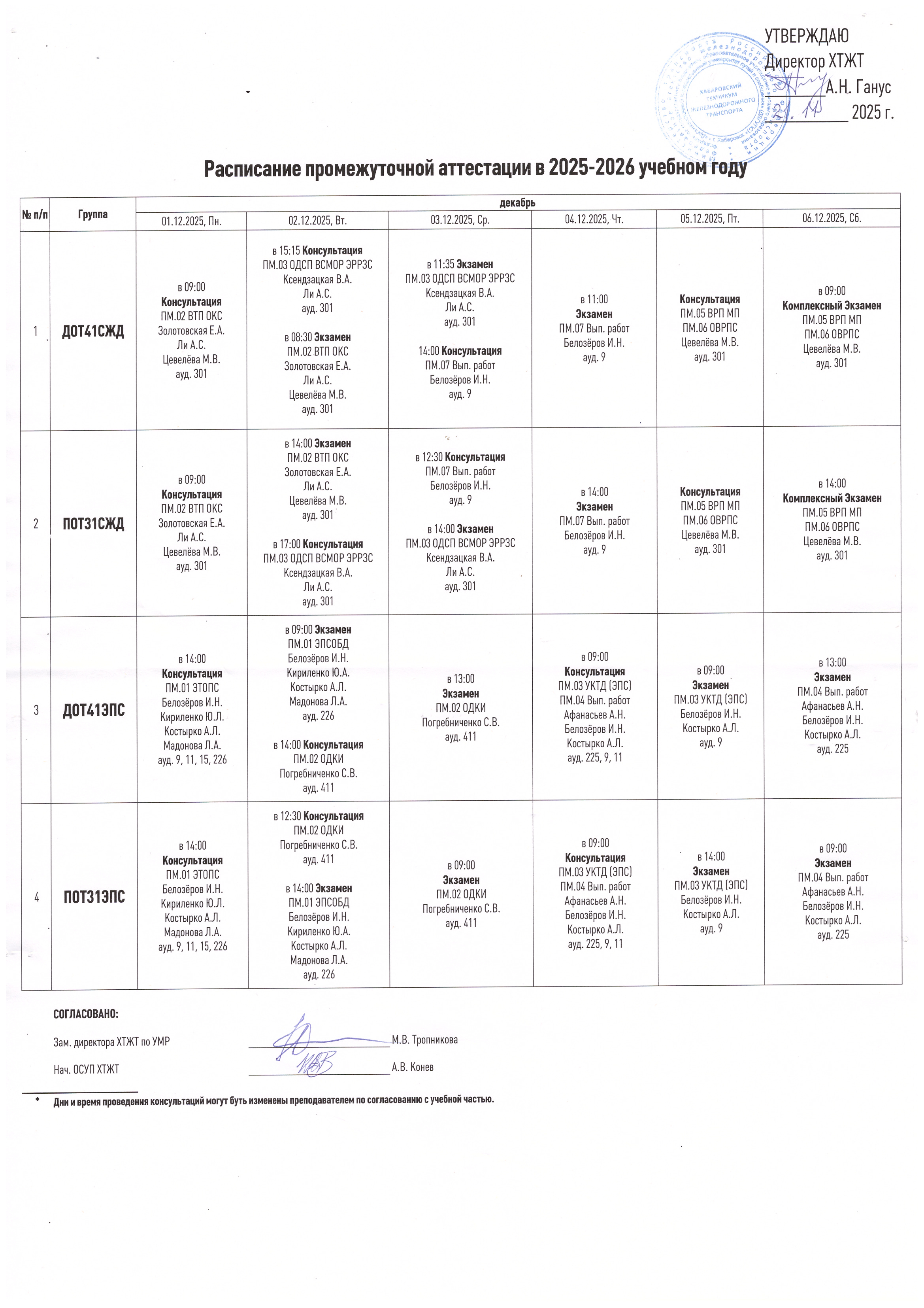 Расписание экзаменационной сесcии студентов