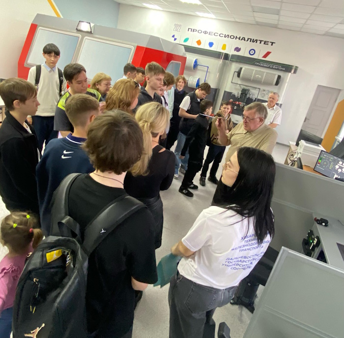12 апреля 2025 года в рамках Единого дня открытых дверей ФП «Профессионалитет» состоялся мастер-класс в Хабаровском техникуме железного транспорта для обучающихся г. Хабаровска, Хабаровского района, Хабаровского края. Преподаватель спецдисциплин высшей категории Белозеров Игорь Николаевич и техник 1 категории Федореев Константин Викторович совместно с амбассадорами профессионалитета провели для школьников мастер-класс «Управление локомотивом», который познакомил ребят со специальностью «электроподвижной состав».