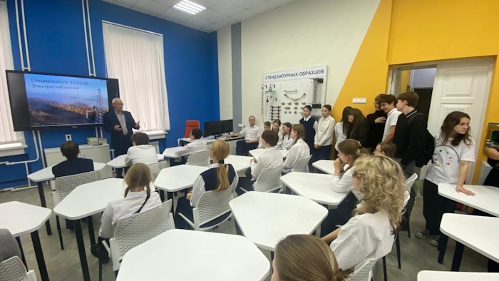 18 октября 2025 года в рамках Единого дня открытых дверей ФП «Профессионалитет» состоялся мастер-класс «Электромонтер контактной сети». Преподаватель спецдисциплин высшей категории, Мележик Василий Владимирович совместно с амбассадорами Профессионалитета познакомили школьников со специальностью «Электроснабжение».