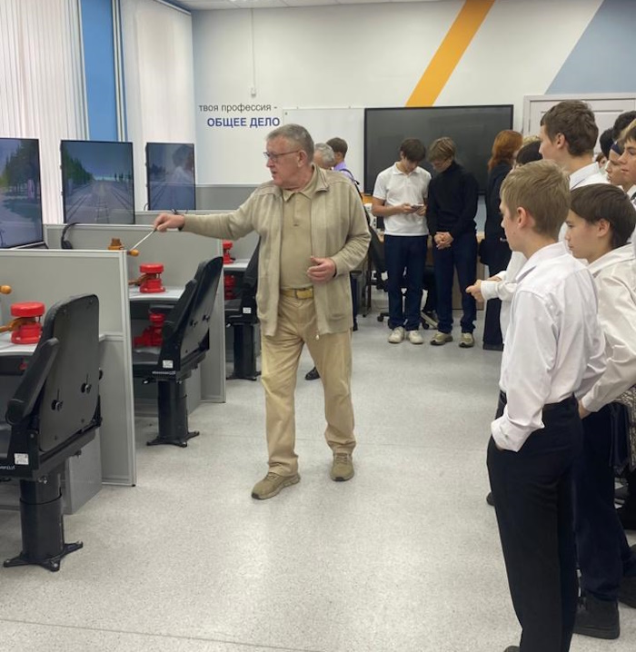 18 октября 2025 года в рамках Единого дня открытых дверей ФП «Профессионалитет» в Хабаровском техникуме железного транспорта для обучающихся г. Хабаровска, Хабаровского района, Хабаровского края преподаватель спецдисциплин высшей категории Белозеров Игорь Николаевич и техник 1 категории Федореев Константин Викторович совместно с амбассадорами профессионалитета провели для школьников мастер-класс «Управление локомотивом», который познакомил ребят со специальностью «Электроподвижной состав».