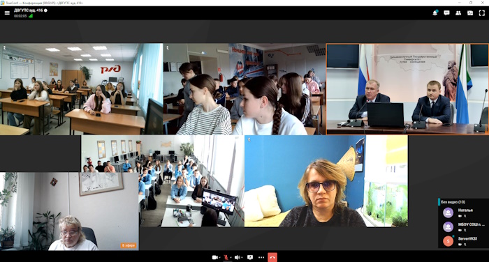 18 октября 2025 года в рамках Единого дня открытых дверей ФП «Профессионалитет» состоялось родительское собрание для родителей и школьников 8-11 классов. Перед школьниками и родителями выступили Ганус Андрей Николаевич – директор Хабаровского техникума железнодорожного транспорта,. Сапрыкин Евгений Александрович – заместитель начальника службы управления персоналом Дальневосточной железной дороги – филиала ОАО «РЖД». На собрании рассматривались следующие вопросы: