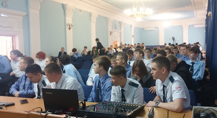 Перед студентами первых курсов выступил Левицкий Геннадий Степанович, заместитель председателя ветеранской организации войсковой части 7482.2, который представлял Дом детского творчества «Маленький принц», Кириллова Светлана Владимировна, председатель Совета ветеранов Центрального района, Ермизова Елена Сергеевна, экскурсовод музея им. Н.И. Гродекова из отдела детского музея.