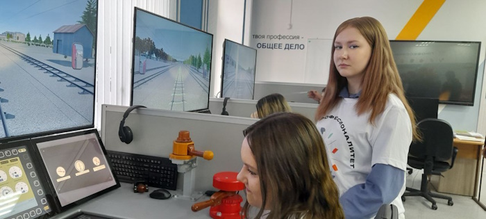 • Мастер класс «Машинист локомотива» познакомил школьников со специальностями помощник машиниста, машинист локомотива. Профессиональная проба «Управление локомотивом на тренажере». Мастер-класс провел техник 1 категории Федореев К.В. совместно с амбассадорами Профессионалитета.