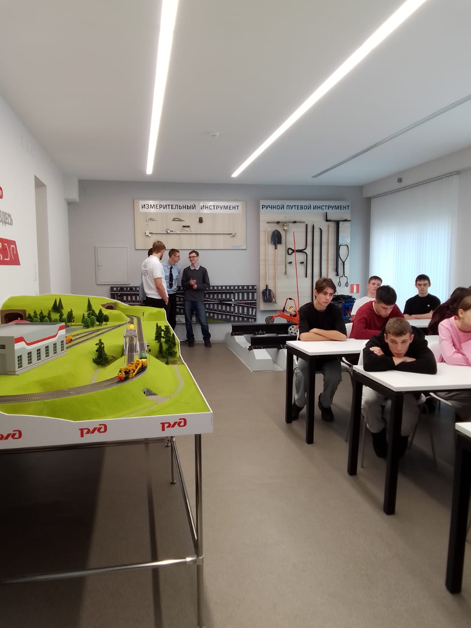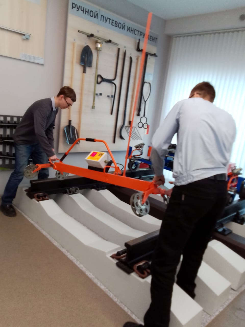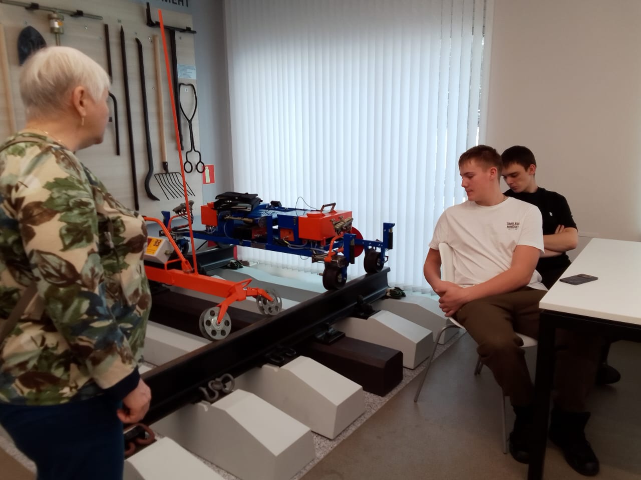 • Мастер-класс «Монтер пути» познакомил ребят со специальностью строительство железных дорог, путь и путевое хозяйство. Для школьников была проведена профессиональная проба «Измерение ширины колеи при помощи различных технических устройств». Мастер-класс провела преподаватель спецдисциплин высшей категории, председатель ПЦК СЖД Цевелева М.В. совместно с амбассадорами Профессионалитета.