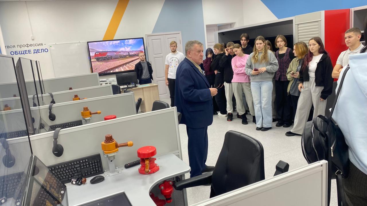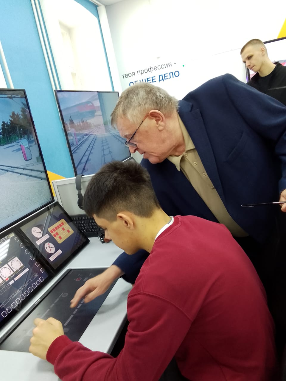 • Мастер класс «Машинист локомотива» познакомил школьников со специальностями помощник машиниста, машинист локомотива. Профессиональная проба «Управление локомотивом на тренажере». Мастер-класс провел техник 1 категории Федореев К.В. совместно с амбассадорами Профессионалитета.