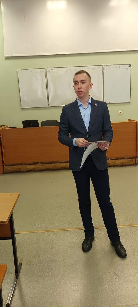 Артем Сергеевич Смоляров, член Молодежной общественной палаты при Хабаровской городской Думе провел беседу со студентами ПОТ11ОИБ и ПОТ21ОИБ.