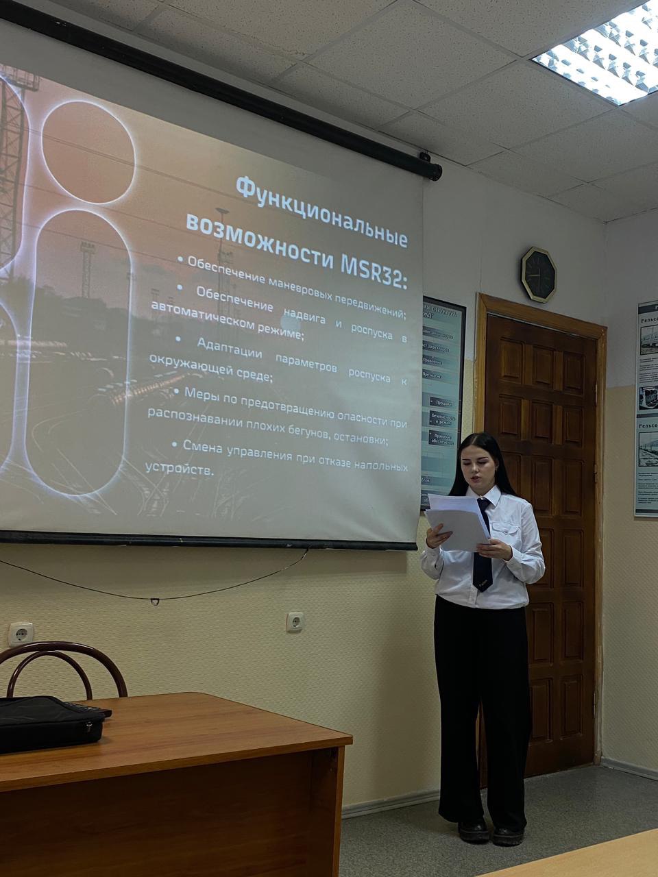 28 ноября для групп ПОТ21ОПУ, ПОТ22ОПУ, ПОТ31ОПУ, ДОТ31ОПУ, председателем ПЦК Надменко Н.Г. была организована научно-практическая конференция «Технологии инновационного развития», посвященная современным решениям на железнодорожном транспорте как одному из наиболее перспективных направлений его развития. Основная цель конференции: познакомить аудиторию с инновационными технологиями в цифровизации железнодорожной отрасли. В конференции приняли участие около 25 человек. С докладами выступили обучающиеся 1-4 курсов: Худышкина Т.С., Хегай А.А., Широков Е.В., Поливина Е.Г., Костина А.Н., Шардакова А.А., Гавришкив А.А. Научными руководителями были преподаватели: Надменко Н.Г., Страпачук Н.В., Чумакова Т.И., Стефанович М.В, Суворина Е.В., Зеленина Н.В. Доклады были содержательные, увлекательные и интересные. Обучающиеся совместно с научным руководителем, разработали свои презентации для тем докладов. Зрители конференции также проявили активность и задали все интересующие их вопросы.