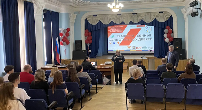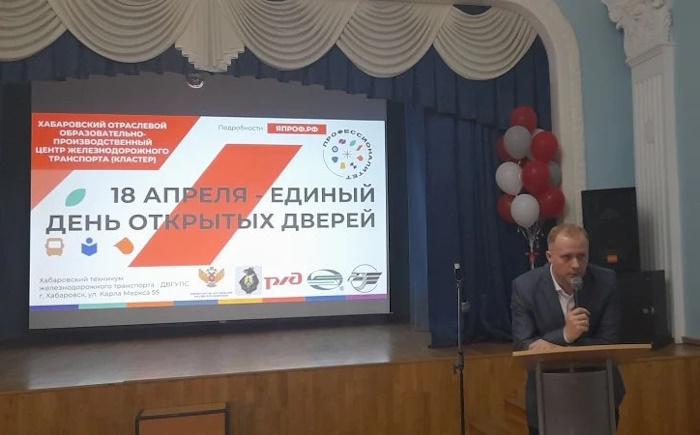 18 апреля 2026 года в рамках Единого дня открытых дверей ФП «Профессионалитет» состоялась встреча школьников и родителей с представителями Дальневосточной железной дороги - филиала ОАО «РЖД», на которой проходило информирование о востребованности железнодорожных профессий на рынке труда региона, о возможности заключения целевых договоров и трудоустройства, мерах социальной поддержки работников и дальнейшего карьерного роста в ОАО «РЖД».