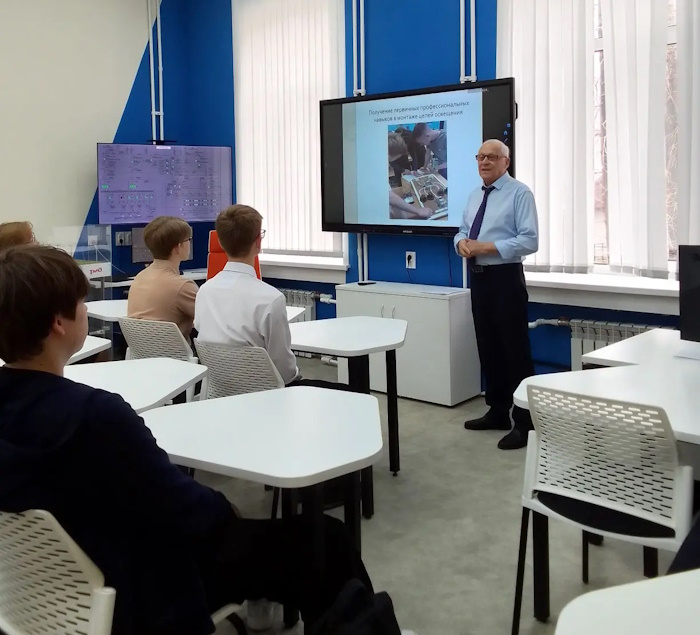 18 апреля 2026 года в рамках Единого дня открытых дверей ФП «Профессионалитет» состоялся мастер-класс «Электромонтер контактной сети». Преподаватель спецдисциплин высшей категории, Мележик Василий Владимирович совместно с амбассадорами Профессионалитета познакомили школьников со специальностью «Электроснабжение».