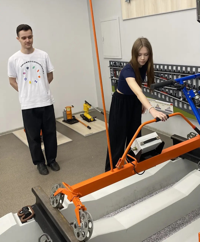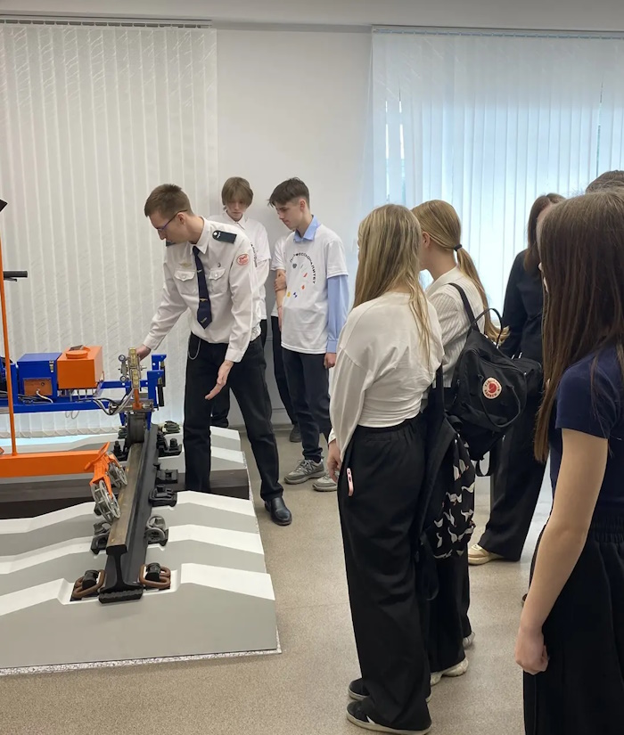 18 апреля 2026 года в рамках Единого дня открытых дверей ФП «Профессионалитет» председатель ПЦК СЖД, преподаватель спецдисциплин высшей категории Золотовская Евгения Александровна совместно с амбассадорами профессионалитета провела для школьников профессиональную пробу «Измерение ширины колеи при помощи различных технических устройств», которая познакомила ребят со специальностью «Строительство железных дорог, путь и путевое хозяйство».