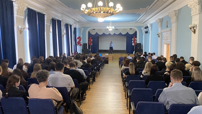 В актовом зале ХТЖТ состоялось выступление старшего лейтенанта полиции Марковой Юлии Евгеньевны, которая работает инспектором ПДН в 8-ом отделе полиции УМВД России по г. Хабаровску. Инспектор рассказала ребятам о возможностях работы в правоохранительных органах, пригласила заполнить анкету. Юлия Евгеньевна проинформировала о том, что после 20 лет работы сотрудники полиции выходят на пенсию, о том, что 1 год работы на Дальнем Востоке в полиции приравнивается к 1,5 годам. У сотрудников полиции большой отпуск, он составляет 60 дней, в отпуске выплачиваются не только отпускные, но и зарплата, также оплачивается больничный, полицейские лечатся в подведомственных клиниках бесплатно.