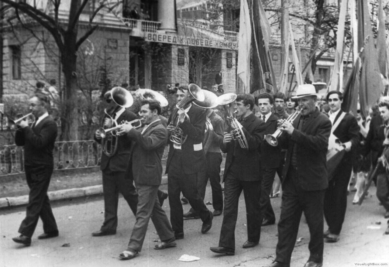 1969 г. 1 мая. Колонна техникума со воим духовым оркестром