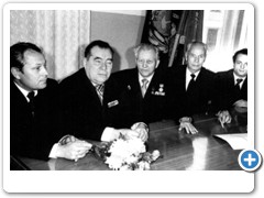 1975 г. Встреча. Директор техникума Жильнио Б.П., ветераны и Кравец Ю.А.
