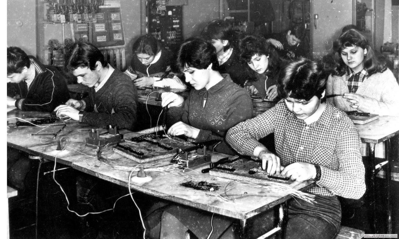 1982 г. В монтажных мастерских. Зачет принимают Пахомов В.А. и Сараева З.Н.
