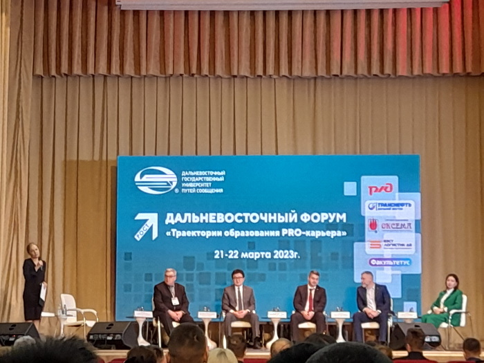 Дальневосточном форуме "Траектории образования PRO-карьера", который проходил 21-22 марта 2023г. на базе Дальневосточного государственного университета путей сообщения.