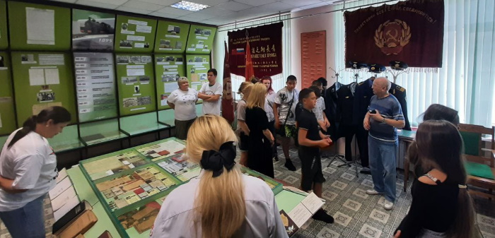 В рамках программы популяризации ФП «Профессионалитет» для школьников 7-9 классов пгт. Партизанск Приморского края, обучающихся на Дальневосточной детской железной дороге, структурном подразделении ДВЖД ОАО «РЖД» 9 августа в Хабаровском техникуме железнодорожного транспорта была организована экскурсия по историко-патриотической выставке ХТЖТ. Экскурсию провел руководитель музея истории ХТЖТ почетный железнодорожник Кравец Юрий Александрович.