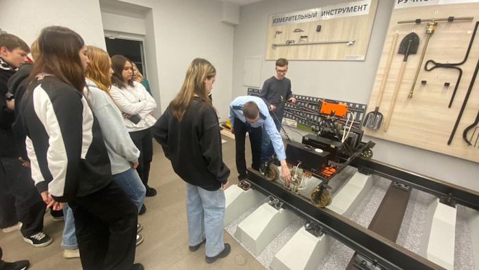 • Мастер-класс «Монтер пути» познакомил ребят со специальностью строительство железных дорог, путь и путевое хозяйство. Для школьников была проведена профессиональная проба «Измерение ширины колеи при помощи различных технических устройств». Мастер-класс провела преподаватель спецдисциплин высшей категории, Ксензацкая В.А. совместно с амбассадорами Профессионалитета.