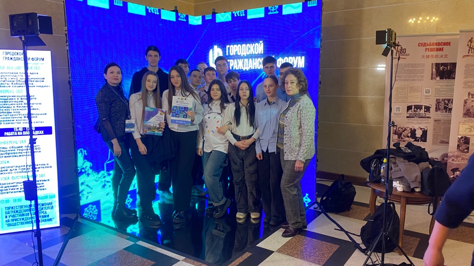 21.11.2025 г. в городском дворце культуры г. Хабаровска состоялся Гражданский форум под названием «Герои среди нас». Участниками форума стали педагоги Ольга Александровна Семеновна и Елена Семеновна Вечерская, в форуме принимали участие несколько групп студентов, в том числе, обучающиеся по программе «Профессионалитет».
