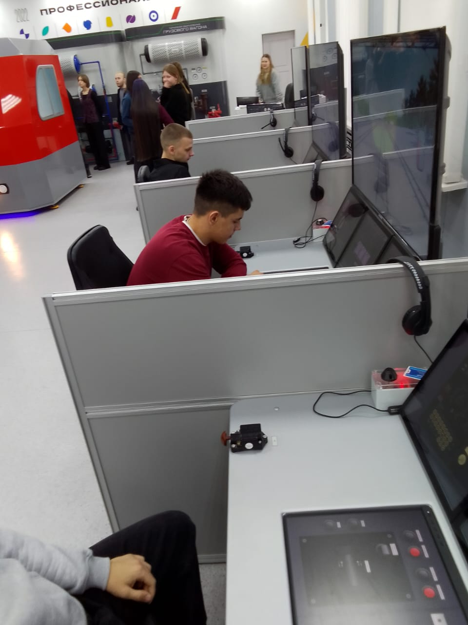 • Мастер класс «Машинист локомотива» познакомил школьников со специальностями помощник машиниста, машинист локомотива. Профессиональная проба «Управление локомотивом на тренажере». Мастер-класс провел техник 1 категории Федореев К.В. совместно с амбассадорами Профессионалитета.