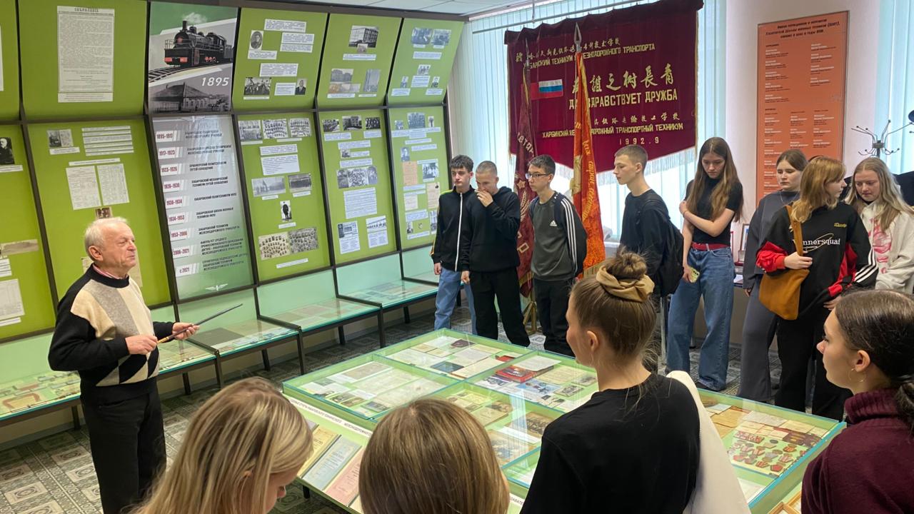 25 ноября 2025 года в Хабаровском техникуме железнодорожного транспорта состоялась экскурсионная программа для школьников 7-х - 9-х классов МБОУ СОШ № 1 р.п. Хор. Мероприятие состояло из комплекса профориентационных мастер-классов, профессиональных проб, а также знакомства с историей и традициями ХТЖТ. В программу для школьников вошли: