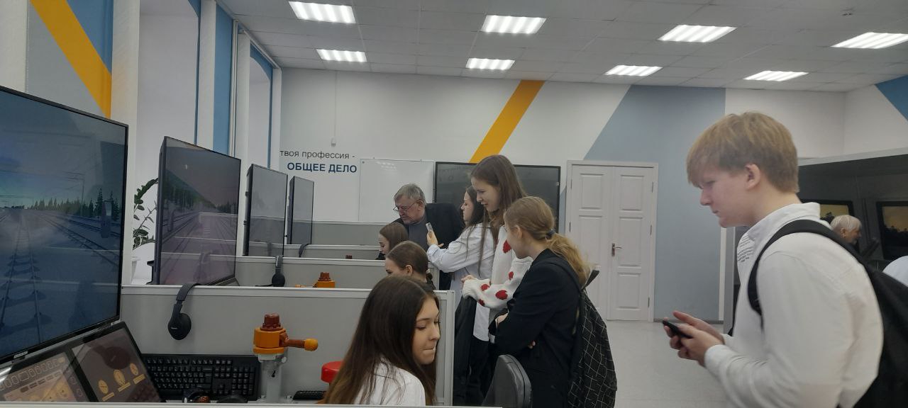• Мастер класс «Машинист локомотива» познакомил школьников со специальностями помощник машиниста, машинист локомотива. Профессиональная проба «Управление локомотивом на тренажере». Мастер-класс провел техник 1 категории Федореев К.В. совместно с амбассадорами Профессионалитета.