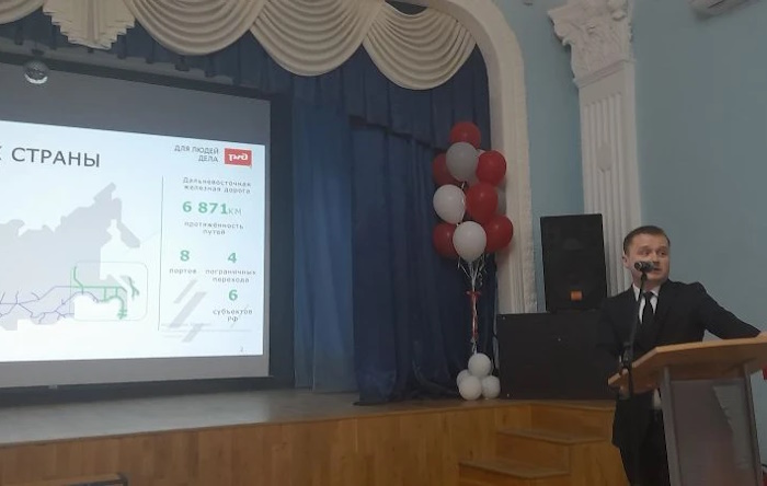 18 апреля 2026 года в рамках Единого дня открытых дверей ФП «Профессионалитет» состоялась встреча школьников и родителей с представителями Дальневосточной железной дороги - филиала ОАО «РЖД», на которой проходило информирование о востребованности железнодорожных профессий на рынке труда региона, о возможности заключения целевых договоров и трудоустройства, мерах социальной поддержки работников и дальнейшего карьерного роста в ОАО «РЖД».
