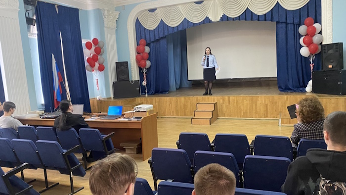 В актовом зале ХТЖТ состоялось выступление старшего лейтенанта полиции Марковой Юлии Евгеньевны, которая работает инспектором ПДН в 8-ом отделе полиции УМВД России по г. Хабаровску. Инспектор рассказала ребятам о возможностях работы в правоохранительных органах, пригласила заполнить анкету. Юлия Евгеньевна проинформировала о том, что после 20 лет работы сотрудники полиции выходят на пенсию, о том, что 1 год работы на Дальнем Востоке в полиции приравнивается к 1,5 годам. У сотрудников полиции большой отпуск, он составляет 60 дней, в отпуске выплачиваются не только отпускные, но и зарплата, также оплачивается больничный, полицейские лечатся в подведомственных клиниках бесплатно.