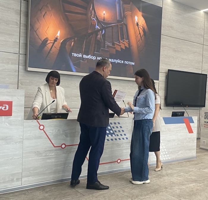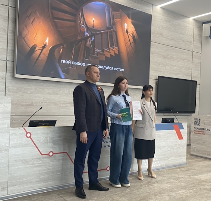 28 апреля в ДВГУПС состоялось награждение участников и победителей конкурса творческих работ «РеЧистый Хабаровск». Этот творческий конкурс проводится третий год. Он направлен на популяризацию и чистоту русского языка, формирование образа современной молодёжи. Проект призывает участников проявить активную жизненную позицию и творческие способности. В номинациях: видеоролик, цифровой плакат, бумажный плакат приняло участие более 100 человек - это студенты университета, учащиеся школ, в том числе студентка первого курса группы ДОТ11ТРО Лубянкина Карина. Всем конкурсантам были вручены сертификаты и подарки.